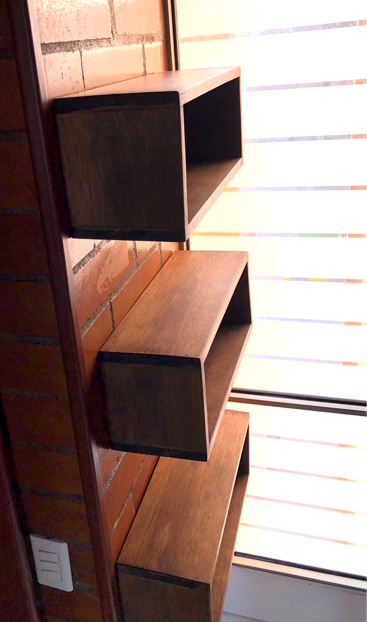 Repisas en madera reciclada y acabado rústico natural en color café para espacios personalizados.