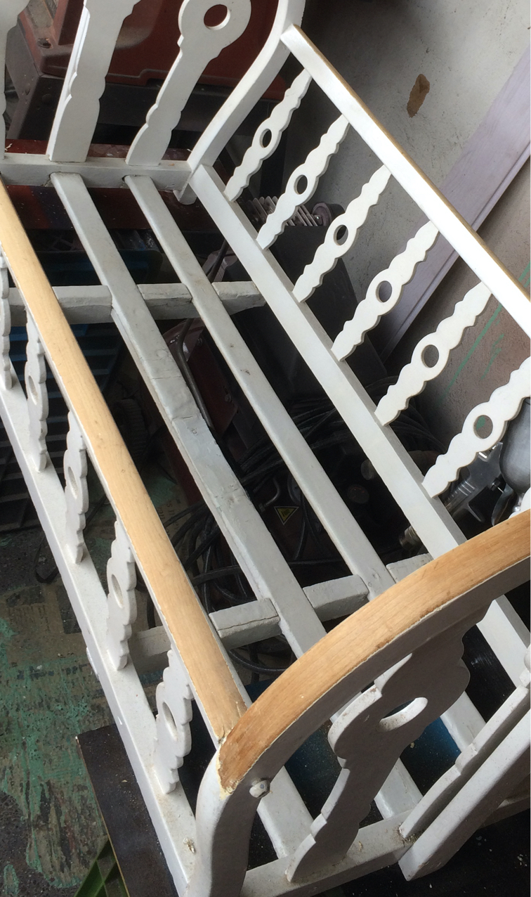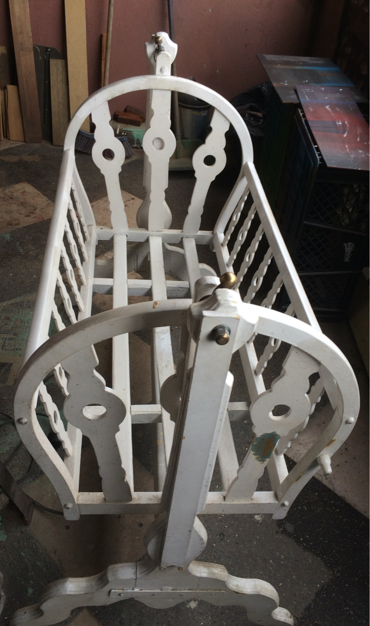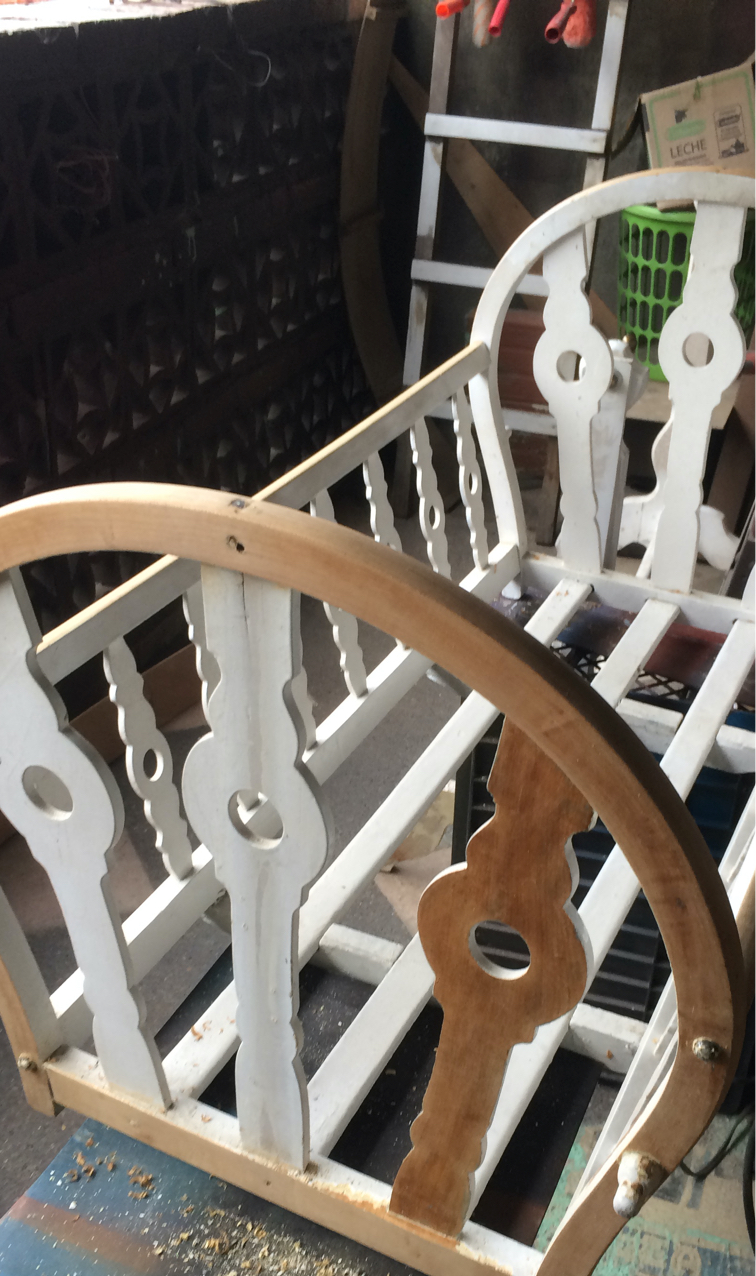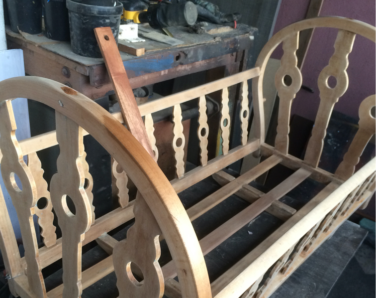 Renovación de moises con más de 100 años. Trabajo realizado pieza por pieza, remoción de 4 capas de pintura para volver al estado natural de la madera y pintado en sellador y laca, ajuste y fortalecimiento de base y soportes.